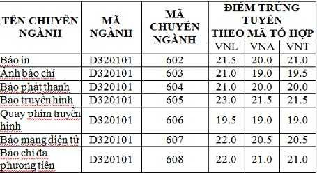 (Mã tổ hợp: VNL: Văn - Năng khiếu báo chí - Lịch sử; VNA: Văn - Năng khiếu báo chí - Tiếng Anh; VNT: Văn - Năng khiếu báo chí - Toán).