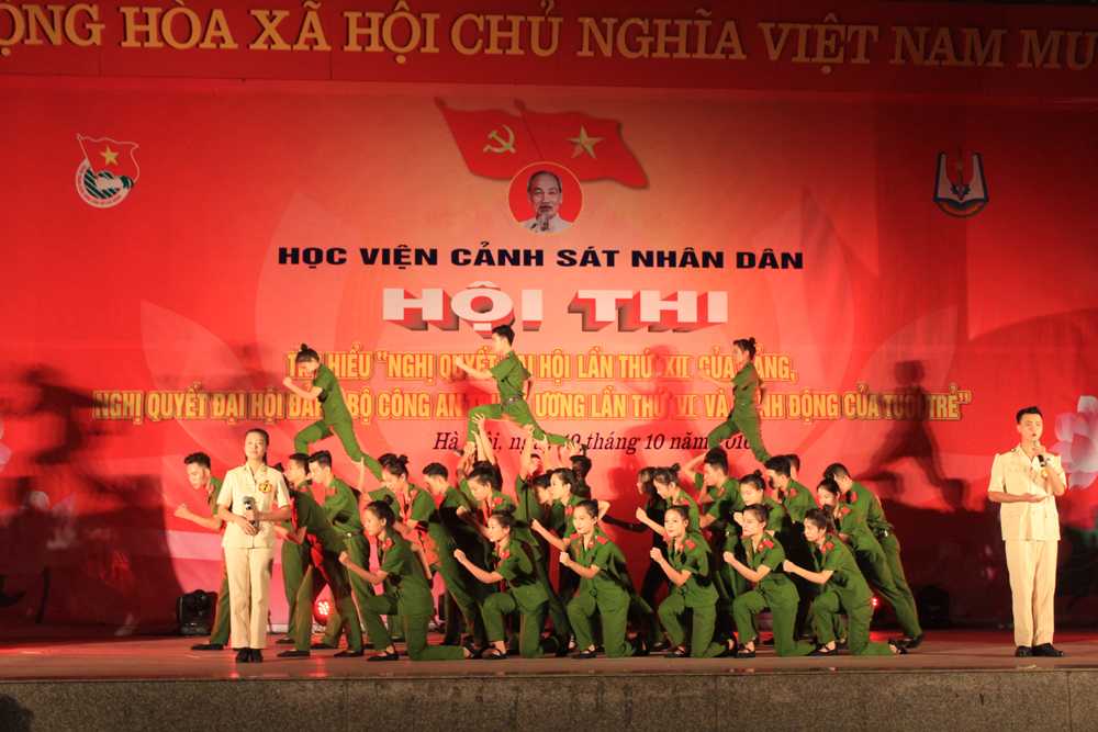 Hội thi tìm hiểu Nghị quyết đại hội lần thứ XII của Đảng, Nghị quyết đại hội Đảng bộ Công an trung ương và hành động của Tuổi trẻ được thể hiện dưới hình thức sân khấu hoá nên thu hút đông đảo học viên tham gia.