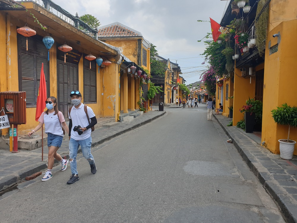 Trên một số tuyến đường trung tâm phố cổ như Nguyễn Thái Học, Trần Phú, Lê Lợi..., cũng chỉ xuất hiện lác đác vài du khách tản bộ.
