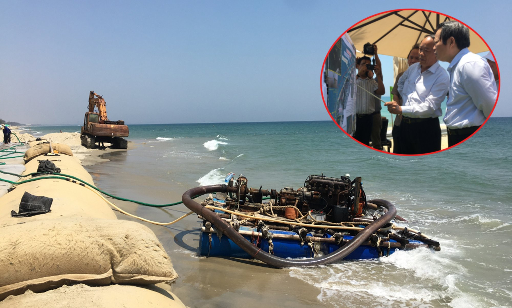 Việc bơm cát vẫn đang được triển khai ở bãi biển Cửa Đại.