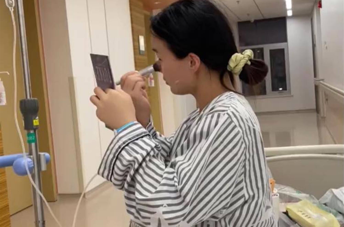 Đang đau cũng phải gắng gượng để tô nốt cái chân mày.
