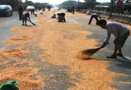 Chứng kiến sự việc, có người chạy xe theo báo tin cho anh Tuấn biết. Khi dừng xe thì anh Tuấn thấy có một số người dân đi đường tốt bụng đã dùng chổi, cào hốt lại bắp cho tài xế.