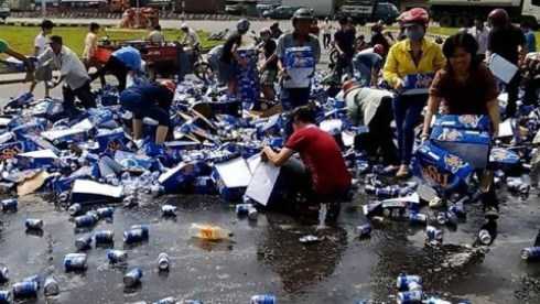 Cơ quan chức năng đã cáo buộc, khi xảy ra vụ xe tải lật bia ở vòng xoay Tam Hiệp hôm 4/12/2013, Cường và Vinh đã dùng xe ba gác của mình ra hiện trường vụ việc, thấy bia quá nhiều nên đã chở hàng chục thùng bia mang về nhà để bán.