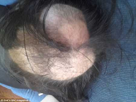 | Hình ảnh Tiarne Menzies và phần đầu thưa thớt tóc của cô |