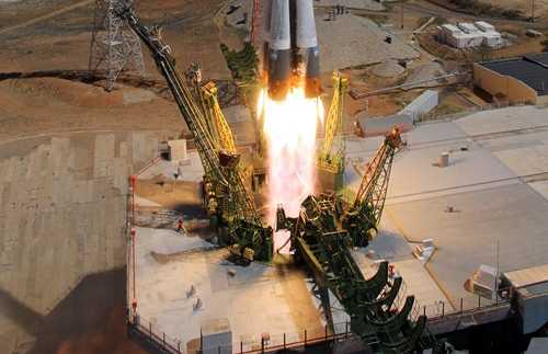 | Tên lửa Soyuz mang theo tàu chở hàng Progress rời bệ phóng vào ngày 28.4 - Ảnh: AFP |