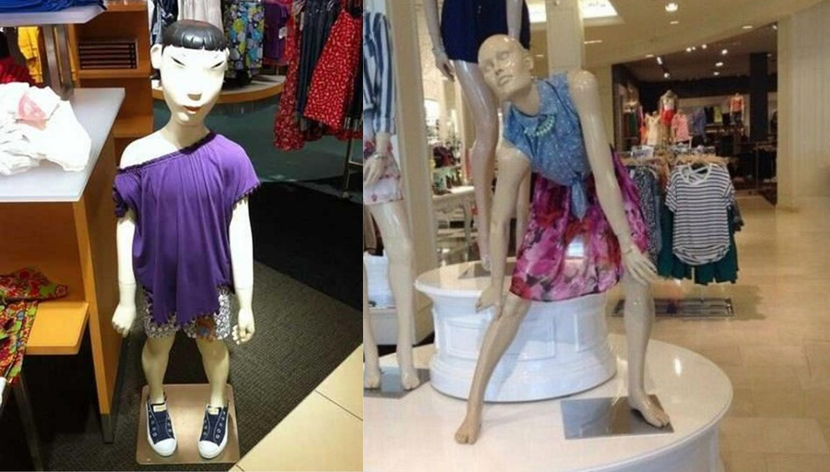 Gương mặt ngơ ngác của con ma-nơ-canh cũng hệt như khách hàng nhìn thấy nó.