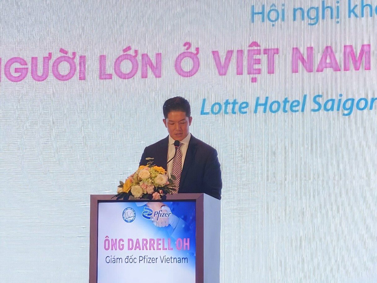 Ông Darrell Oh, Tổng Giám đốc Công ty TNHH Pfizer Việt Nam chia sẻ về những nỗ lực của Pfizer tại chuỗi hội thảo.
