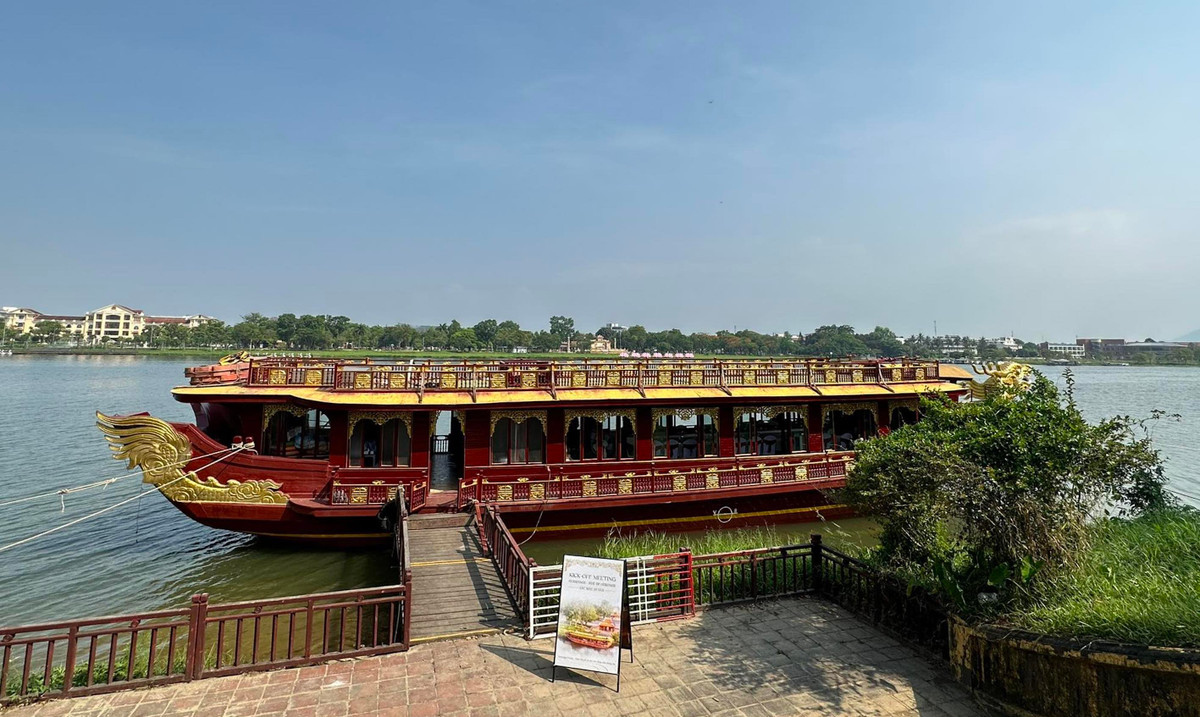 Ngự thuyền Long Quang trước bến Nghênh Lương Đình (Quần thể Di tích Cố đô Huế) dự kiến được phục dựng theo đề án Hueritage - Sắc màu di sản. Trong đó, một số hoạ tiết trang trí trên thuyền sẽ sử dụng kỹ nghệ Pháp lam từng rất thịnh hành dưới thời nhà Nguyễn. (Ảnh: Đức Thủy)