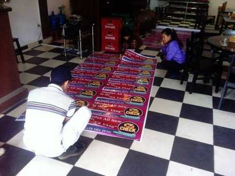 | Để chuẩn bị cho buổi big off, những tấm băng rôn đã được in sẵn và cắt ra phân phát cho các thành viên |