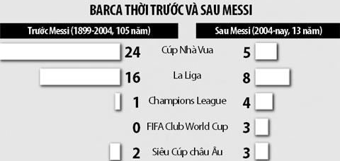 Barcelona, La Liga và bóng đá sẽ rất khác khi không có Messi. Với Barca, hãy nhìn vào số cúp của họ, để thấy rằng lịch sử CLB đã chia ra thành hai thời kỳ rõ rệt: trước và sau Messi.