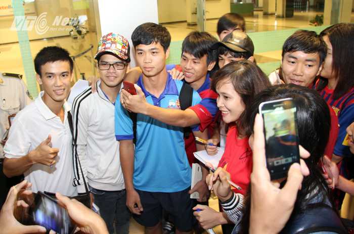 | Công Phượng trong vòng vây của fan hâm mộ Cần Thơ (Ảnh: Hà Thành) |