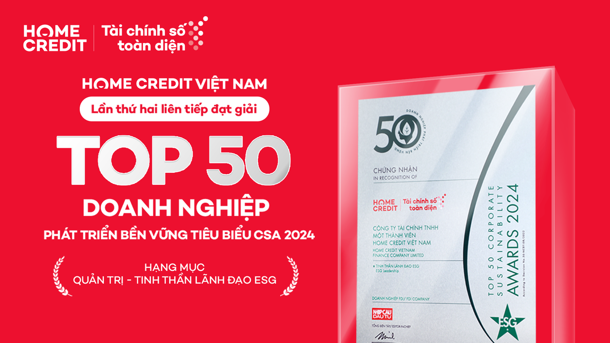 Home Credit liên tiếp 2 năm liền lọt top 50 doanh nghiệp phát triển bền vững tiêu biểu.