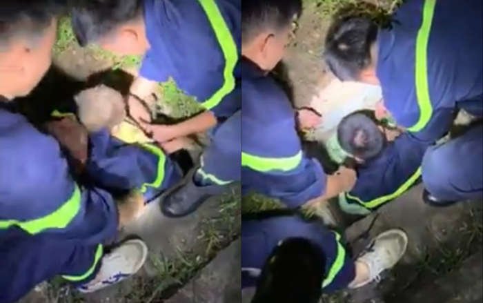 Ngay sau đó, người dân chui xuống cống cứu cháu bé và báo lực lượng chức năng. Tuy nhiên, do cống rãnh nước rất nhỏ nên quá trình giải cứu cháu bé gặp khó khăn.