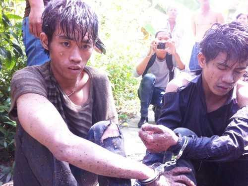 | Thái Duy Tân và Hoàng Minh Thiện bị bắt sau khi trốn dưới rạch trong vườn |