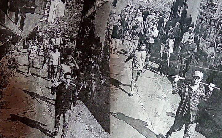 Hình ảnh nhóm côn đồ vác hung khí để giải quyết mâu thuẫn. (Ảnh cắt từ clip)