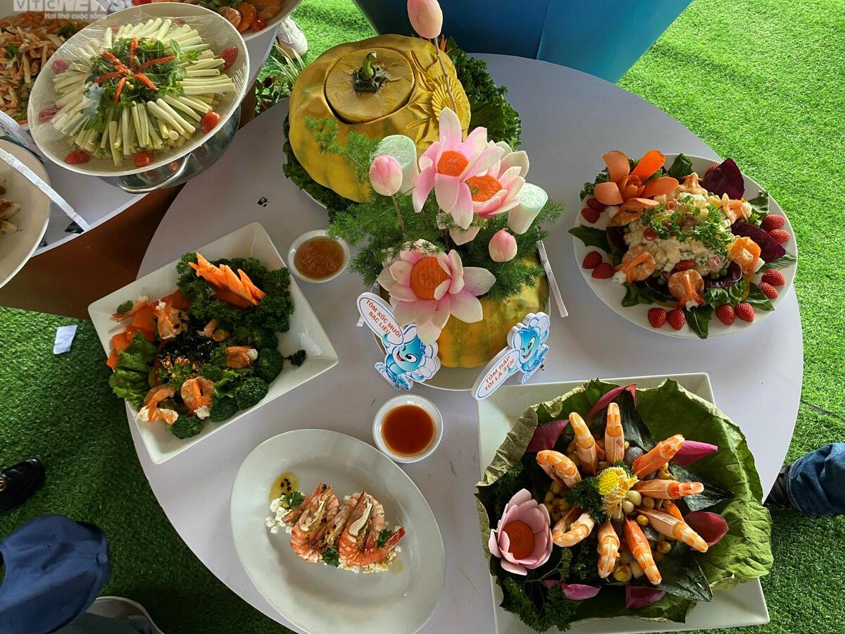 Các món ăn được các đầu bếp chế biến công phu, chăm chút từ khâu chọn nguyên liệu đến trang trí tỉ mỉ từng chi tiết để tạo nên những món ngon mang đậm hương vị tôm và muối Bạc Liêu.