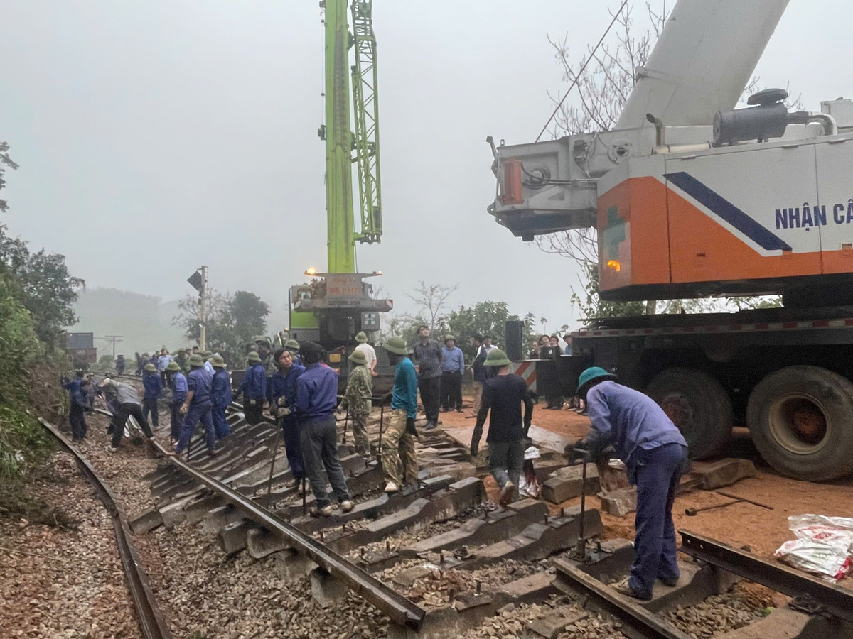 Hơn 100 công nhân được điều động đến hiện trường, làm việc không ngừng nghỉ, trắng đêm khắc phục sự cố để thông tuyến đường sắt Bắc - Nam trong thời gian sớm nhất.
