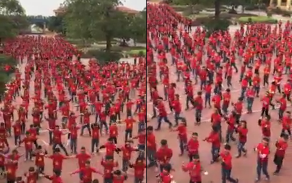 Video: Hơn 1.000 học sinh tiểu học nhảy cổ vũ tinh thần đội tuyển Việt Nam