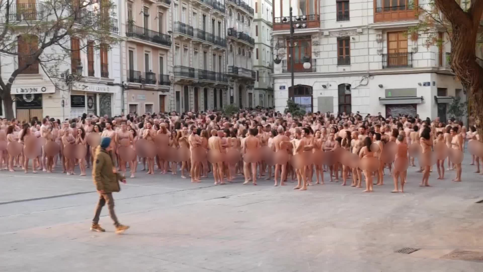 Đám đông tập trung tại khu vực trung tâm thành phố Valencia, Tây Ban Nha hôm 30/3. Nhiếp ảnh gia Spencer Tunik, người lên ý tưởng cho buổi chụp hình cho biết sự kiện này được thực hiện để gây quỹ cho lễ hội văn hóa IntraMurs của Valencia.
