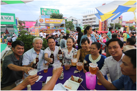 Trong không gian Ngày hội, mọi người cùng nâng ly và hô hào những lời chúc tốt đẹp, thấm vào lòng từng chút một hương vị nồng nàn, đượm thơm, tận hưởng cảm giác lâng lâng bất tận bên nhau. Song song với thưởng thức những chầu bia vàng óng, sóng sánh, mát lạnh, du khách còn được trải nghiệm hàng loạt các trò chơi tương tác, hòa cùng chương trình ca nhạc đặc sắc, sôi động xen lẫn những tiếng cụng ly, tiếng zô vang vui vẻ.