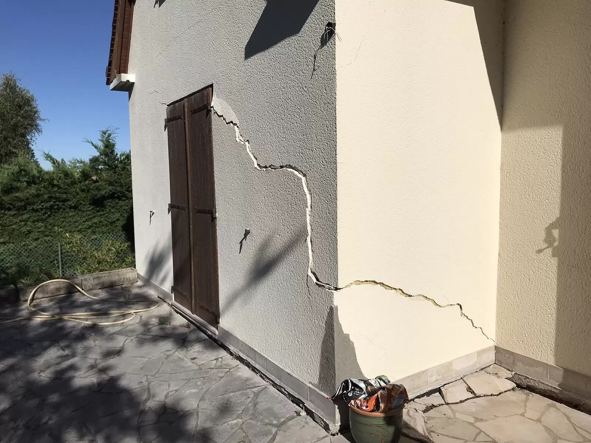 Vết nứt lớn trên một ngôi nhà ở Pháp do hiện tượng đất sét co ngót - trương nở. (Ảnh: Construction21)