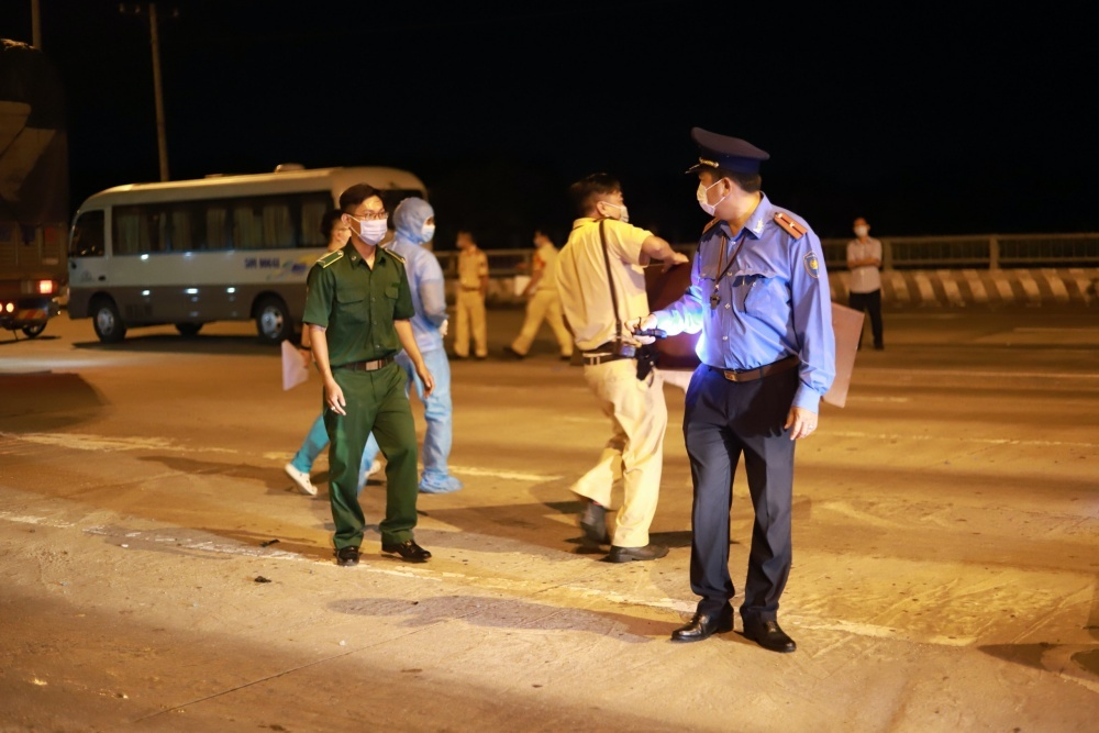 Lực lượng chức năng TP.HCM xuyên đêm kiểm tra y tế tại cửa ngõ.