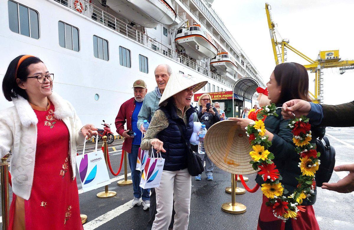 Sáng 29/1 (Mồng 1 Tết Nguyên đán Ất Tỵ 2025), tại Cảng Tiên Sa, Sở Du lịch TP Đà Nẵng chào đón 800 du khách quốc tịch Mỹ trên du thuyền Crystal Symphony đến xông đất Đà Nẵng xông đất.