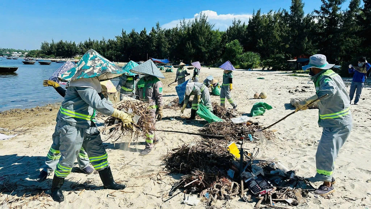 Chính quyền địa phương đã huy động lực lượng, thu gom hơn 15 tấn rác thải ở bãi biển Sa Cần.