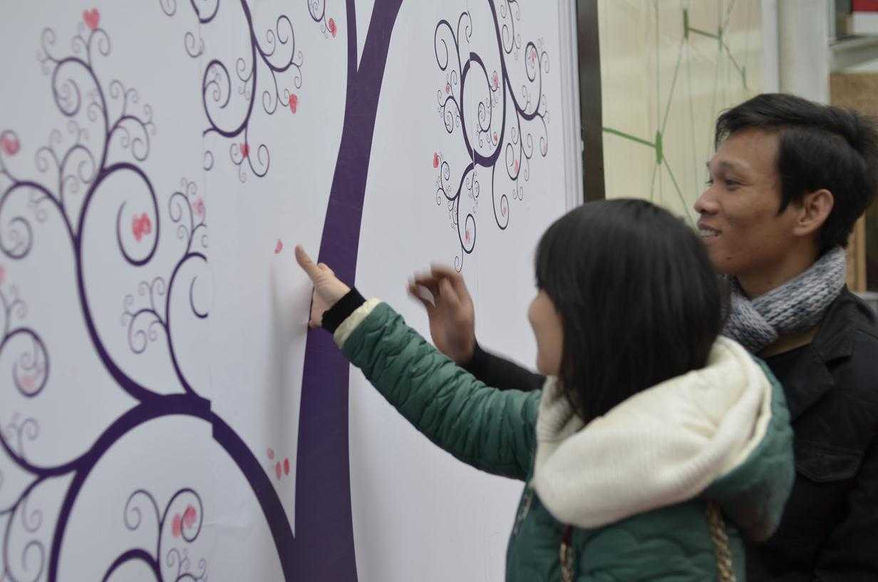 Cùng lăn vân tay hình trái tim trên cây tình yêu
