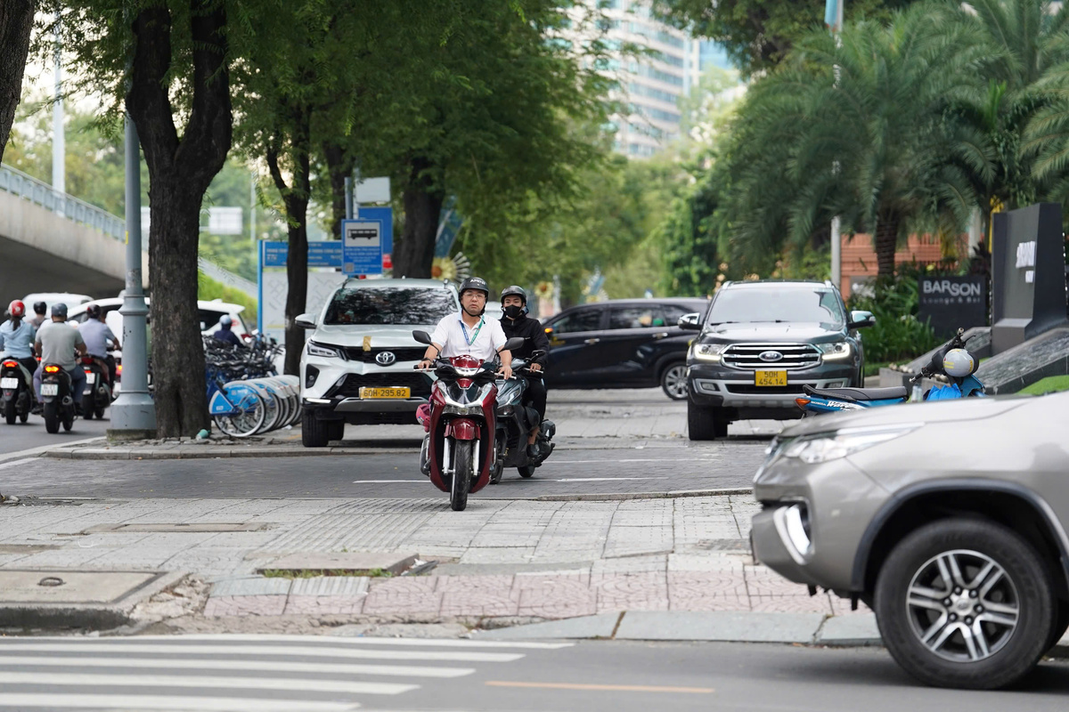 Không chỉ tiềm ẩn nguy cơ tai nạn, việc chạy xe trên vỉa hè rồi bất ngờ nhập vào dòng phương tiện phía dưới còn dễ dẫn đến ùn tắc, nhất là tại khu vực đông đúc.