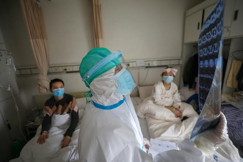 Nhân viên y tế xem phim chụp của một bệnh nhân nhiễm Covid-19 ở Trung Quốc. (Ảnh: Reuters)