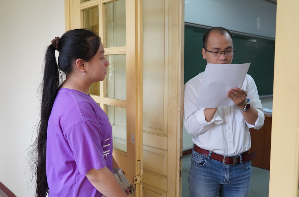 Phụ huynh có con thi vào trường Chuyên THPT Khoa học tự nhiên cũng căng thẳng, hồi hộp.
