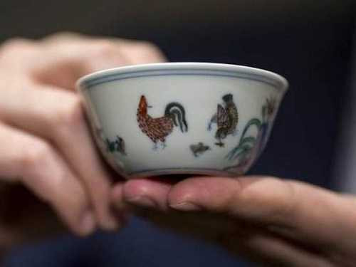 Chiếc ly sứ nhỏ màu trắng được trang trí bằng bức tranh một “vợ chồng gà” đang chăm sóc đàn con này được xác nhận là sản phẩm từ thời Hoàng đế Thành Hóa vào khoảng thời gian từ năm 1465 đến năm 1487.