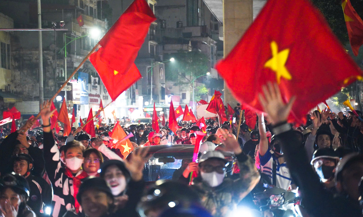 Trận đấu giữa U23 Việt Nam và U23 UAE kết thúc sau hơn 120 phút thi đấu căng thẳng. Ngay sau tiếng còi mãn cuộc, từ nhiều khu dân cư và tuyến đường lớn, người dân mang theo cờ đỏ sao vàng bắt đầu di chuyển về các khu vực trung tâm như Cửa Nam, Hồ Hoàn Kiếm, hầm Kim Liên... để chia sẻ niềm vui chiến thắng.