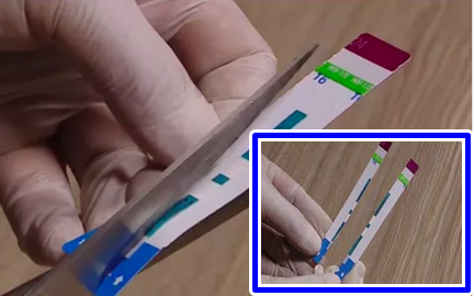 Quá trình test nhanh với mỗi que thử không được thực hiện đúng quy trình mà được những nhân viên dùng kéo cắt làm 2 với vệt kéo đúng vào vị trí giữa của vạch hóa chất xét nghiệm. Chỉ với thao tác như trên, 1 que thử đáng lẽ chỉ được sử dụng cho một người nay “chẻ đôi” dùng cho 2 người. Nhưng bệnh nhân vẫn phải đóng đủ tiền cho một quy trình đầy đủ.