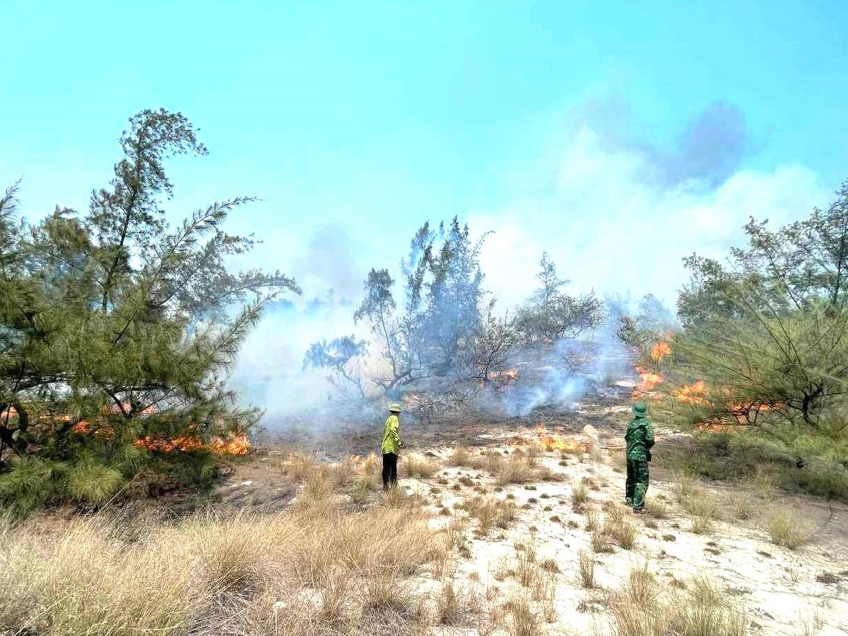Theo ông Thụ, đám cháy bùng phát lúc 12h ngày 29/4 tại khu vực rừng ven biển ở xã Hải Ninh, huyện Quảng Ninh.