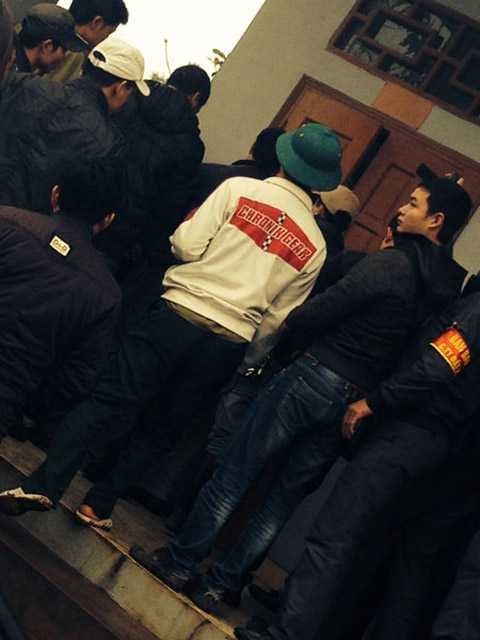 | Những người lạ xông vào chiếm Nhà máy gạch Vũ Bình chiều 13.3 - Ảnh: Văn Đông |
