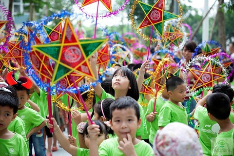 | …con em cán bộ CNV tham gia lễ rước đèn rộn ràng khắp khu đô thị |