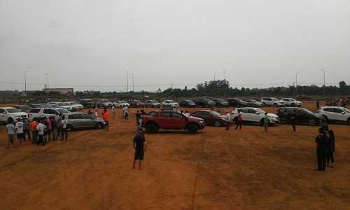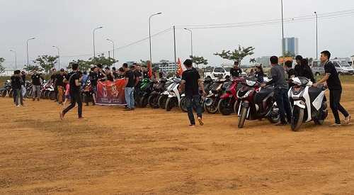| Từ sáng sớm, các xe từ khắp nơi đổ về Khu Công nghệ cao Hòa Lạc để tham gia sự kiện. |