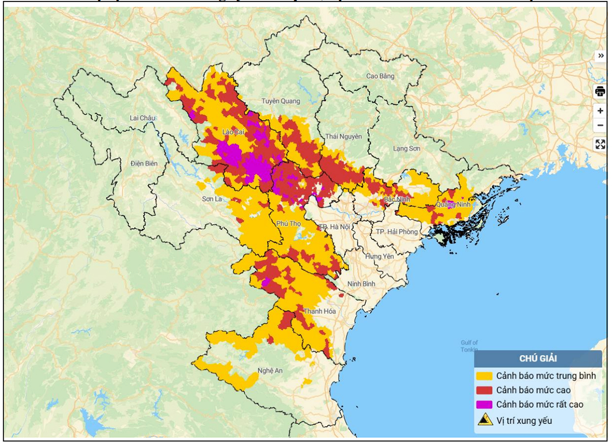 Theo bản đồ nguy cơ lũ quét, sạt lở đất trên các khu vực được Trung tâm Dự báo khí tượng thuỷ văn phát đi, nhiều noi cảnh báo mức rất cao về hiện tượng này.