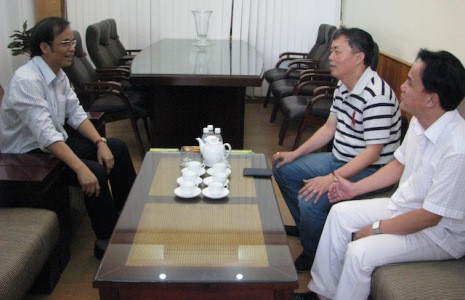 Nhà giáo Lê Minh Hoàng, Giám đốc Sở GD-ĐT Đồng Nai nghe báo cáo về công tác chuẩn bị kỳ thi của thầy Nguyễn Thiệp, Phó Giám đốc kiêm Trưởng BTC kỳ thi IOE tại Đồng Nai.