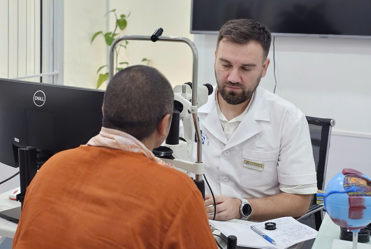 Chuyên gia đến từ Liên bang Nga khám mắt cho bệnh nhân. (Ảnh: TD)