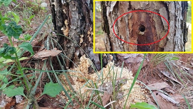 Các thân cây thông bị đục lỗ khiến cây chết dần dần.