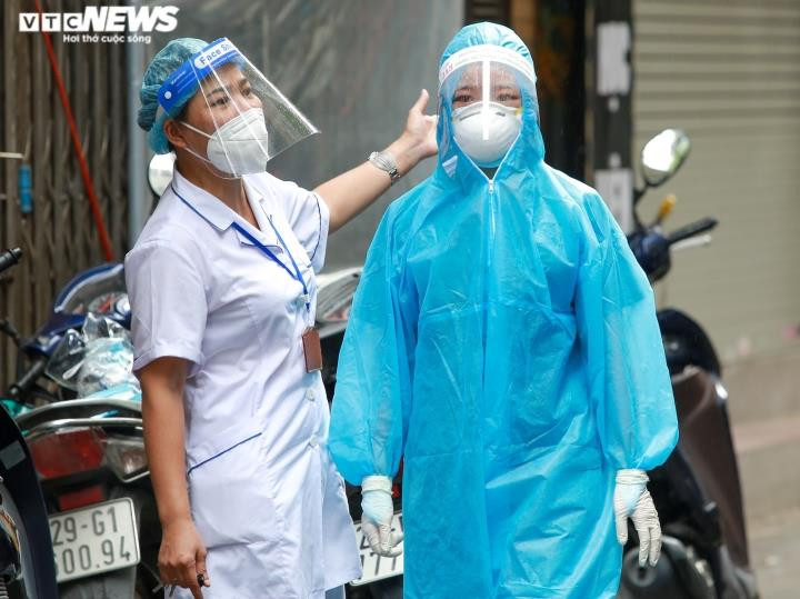 Nhân viên y tế làm công tác phòng chống dịch COVID-19 ở Hà Nội. (Ảnh: Đắc Huy).