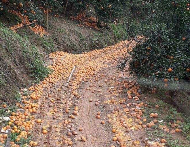 Gần đây, một clip ghi lại cảnh cam sành rụng đầy đường tại Hà Giang thu hút sự quan tâm lớn trên mạng xã hội. Hình ảnh hàng nghìn quả cam rụng vàng dưới gốc, bên vệ đường khiến nhiều người xót xa, kêu gọi “giải cứu”.
