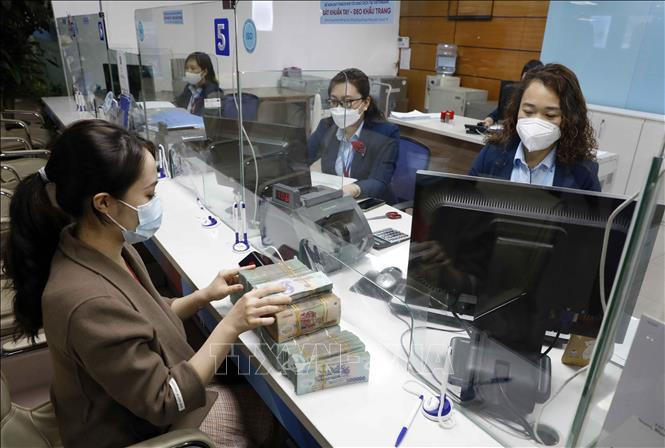 Khách hàng giao dịch tại Phòng giao dịch VietinBank Cửa Nam, Hoàn Kiếm, Hà Nội. (Ảnh: Trần Việt/TTXVN)