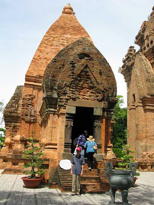 Tầng trên cùng là nơi các ngọn tháp tọa lạc. Những ngôi tháp được xây dựng theo kiểu Chăm, gạch xây rất khít mạch không nhìn thấy chất kết dính. Tôi cho Caterina biết thế hệ các cụ tổ quê tôi xây công trình thường dùng đá vôi nung trắng tán nhỏ trộn với mật mía bền chắc tới bây giờ hơn cả xi măng. Nhưng Caterina lại đồ rằng người Chăm thời ấy có thể dùng nhựa cây trộn với phụ gia gì đó, chứ hồi đó chưa có công nghệ nung vôi. Tôi ngỡ ngàng về tư duy độc lập đầy cá tính của chị.