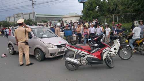 Theo những người chứng kiến, khoảng 15 giờ, xe ô tô BKS 60V-9891, do một người đàn ông điều khiển, chở theo 2 phụ nữ cùng 2 trẻ em, lưu thông từ đường song hành với quốc lộ 1A ra ngã tư Amata.