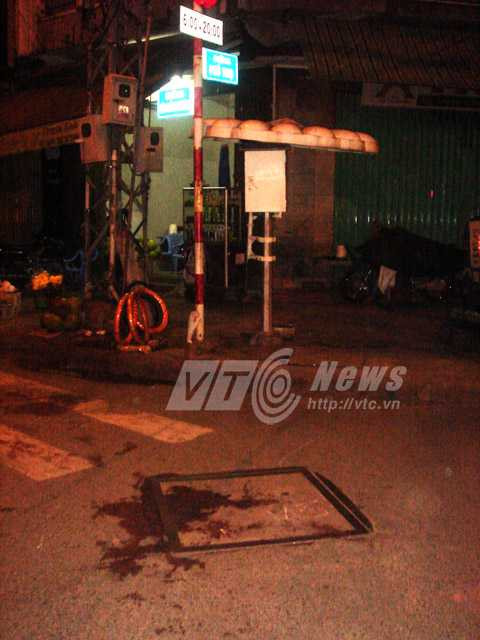 | Vũng máu nạn nhân còn sót tại hiện trường. Ảnh: Phan Cường |
