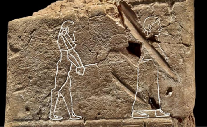Các nhà nghiên cứu xác định hình vẽ trên bảng đất sét có niên đại 3.500 năm là linh hồn một người đàn ông đi bộ với cổ tay bị trói, được một phụ nữ dẫn đường sang thế giới bên kia, nơi hạnh phúc vĩnh cửu được cho là đang chờ đợi họ.